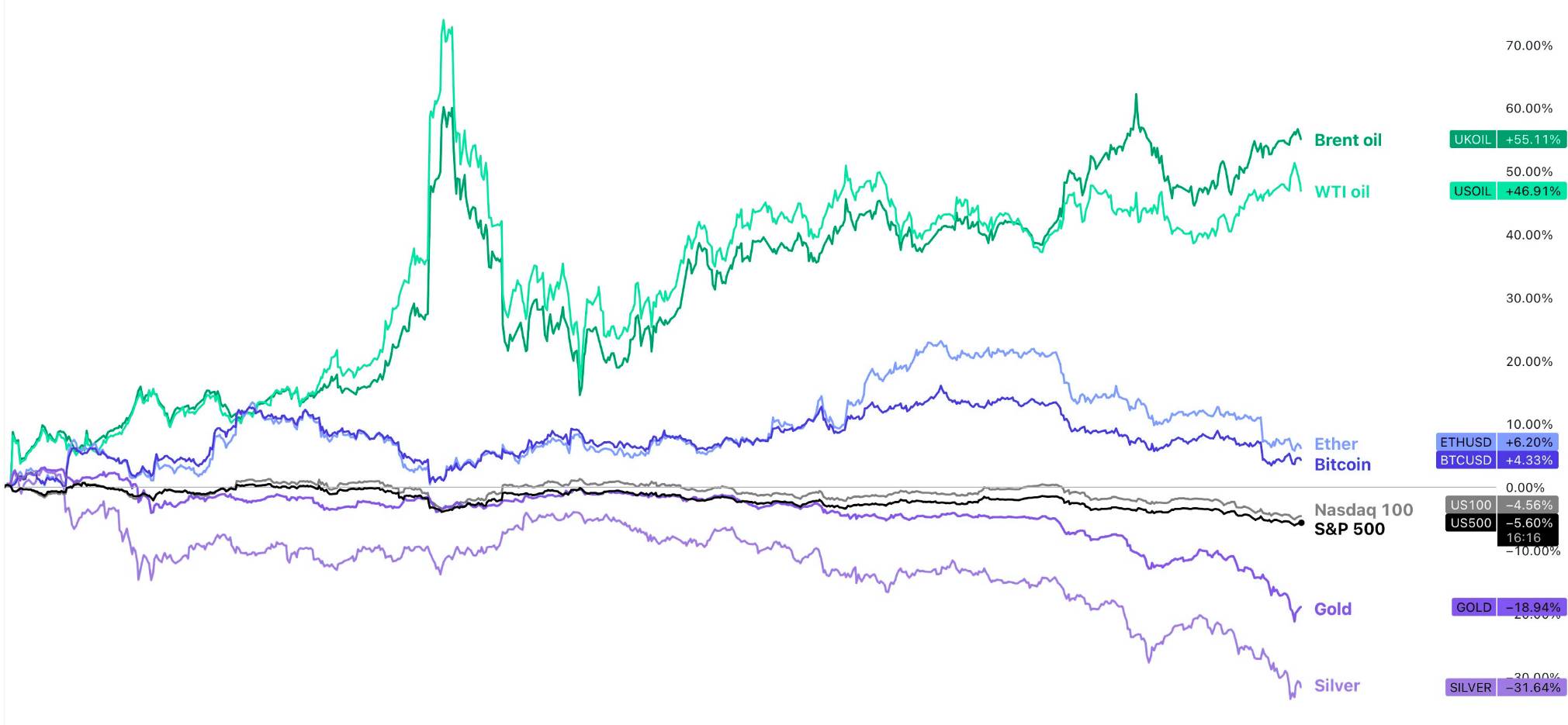 Olie, huizen en crypto stijgen