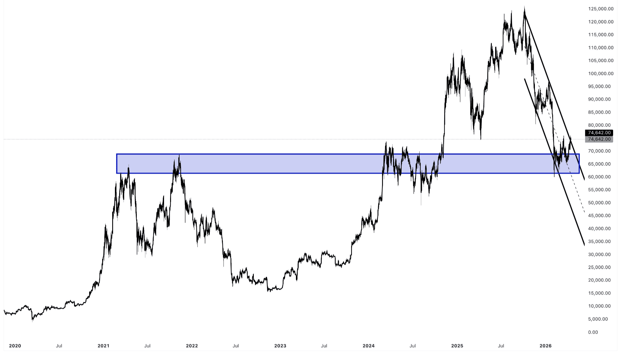 Toch is het ook spannend. Steeds meer beleggers sturen hun Bitcoin naar exchanges, wat meestal een teken is dat de verkoopknop binnen handbereik is. CryptoQuant wijst bovendien op de realized price rond de $77K. Dit niveau werkt als een psychologische en technische barrière: zodra de koers daar in de buurt komt, staan veel mensen weer op break-even of winst, en is de verleiding groot om eieren voor je geld te kiezen.